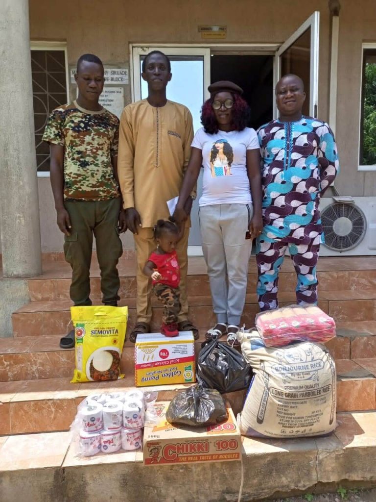 As part of its mandate, the Foundation donated several items, including one bag of rice, 5kg of Semovita, one carton of Indomie, one carton of Chicken Chikki, one big Dano milk, one pack of matches, 1kg of custard powder, five sachets of Dino Tomato, three pieces of Premier soap, twenty-one pieces of chicken flavor, one pack of spaghetti, two packs of tissues, one pair of female shoes, and a cash gift of N5,000. In addition, the Foundation extended financial support to five individuals: Mrs. Ogunlana Felicia, Mrs. Ogunlana Florence, Mr. Adesuyi Ezekiel, Iya Alata, and Bro. Daniel.